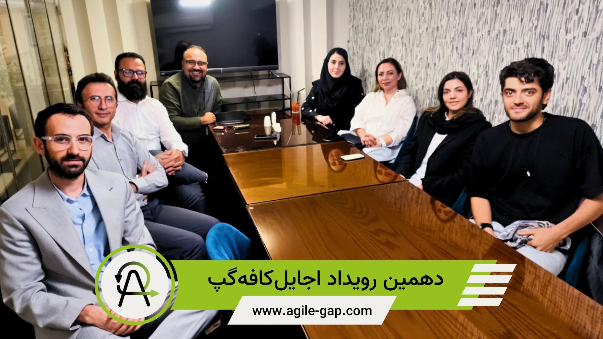 در دهمین رویداد اجایلکافهگپ، شبنم غفوری، محمدرضا مرادی، حسین حاجیزاده، الهه ابراهیمی، پدرام کشاورزی، حسین اللهیاری، علی سخایی و فاطمه صالحی گرد هم آمدند تا در مورد گزارشگیری از تیم و سازمان به خصوص موارد سنتی گفتگو کنند.